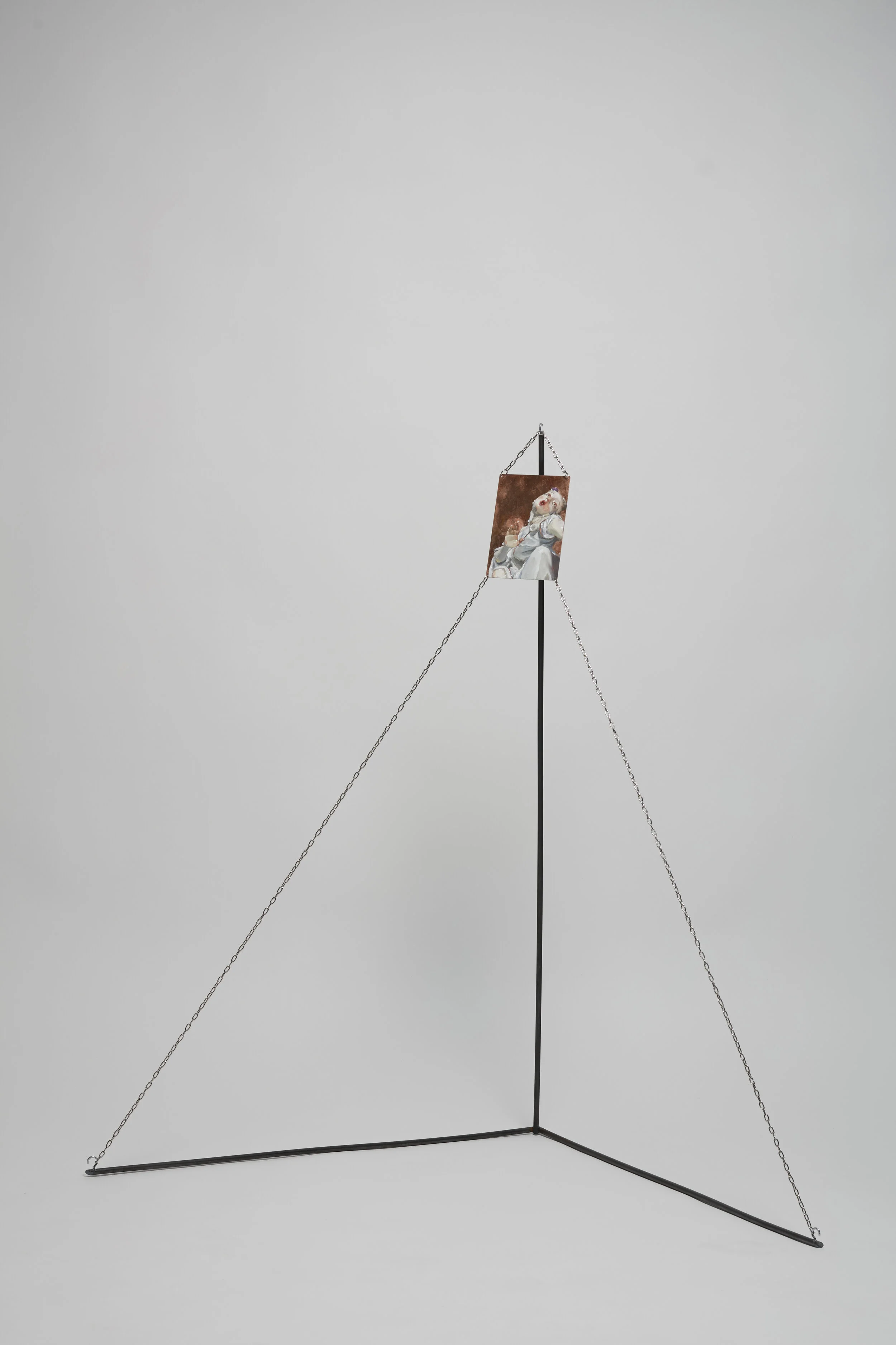 Traces of Anxiety, 100 x 60 cm, Oil on Copper, Chains, Steel 2020